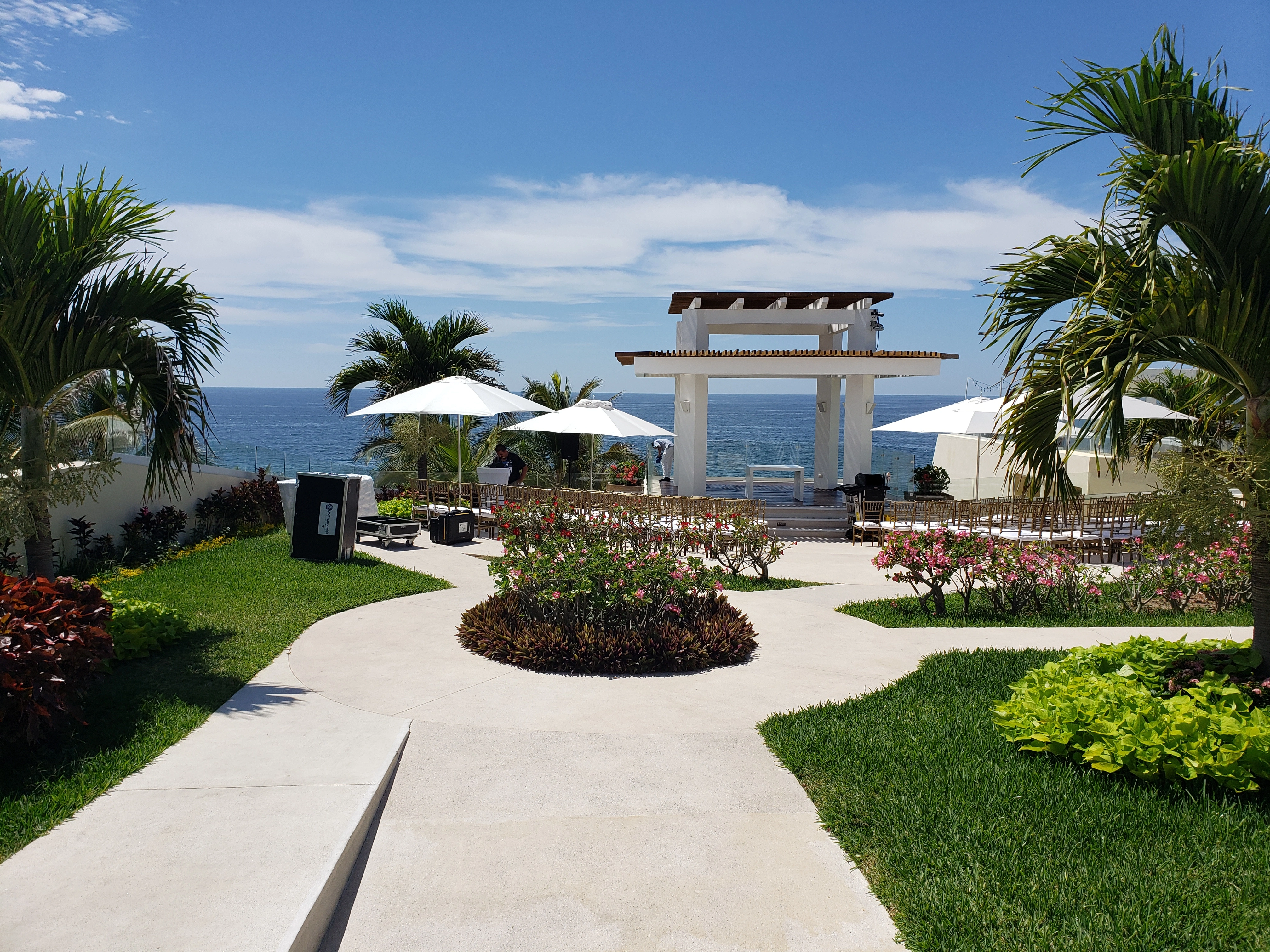 Invite you family & friends for your destination wedding in Puerto Vallarta. This was taken by your very own at the Iberostar Playa Mita Resort. This beautiful setting will seat up to 130 guest. They can offer you some shade with the added umbrellas as it can get a bit warm in the sun. I will admit, we had an amazing breeze from the ocean that sits just beyond the gazebo. The gazebo will give you and your wedding party some shade as well.