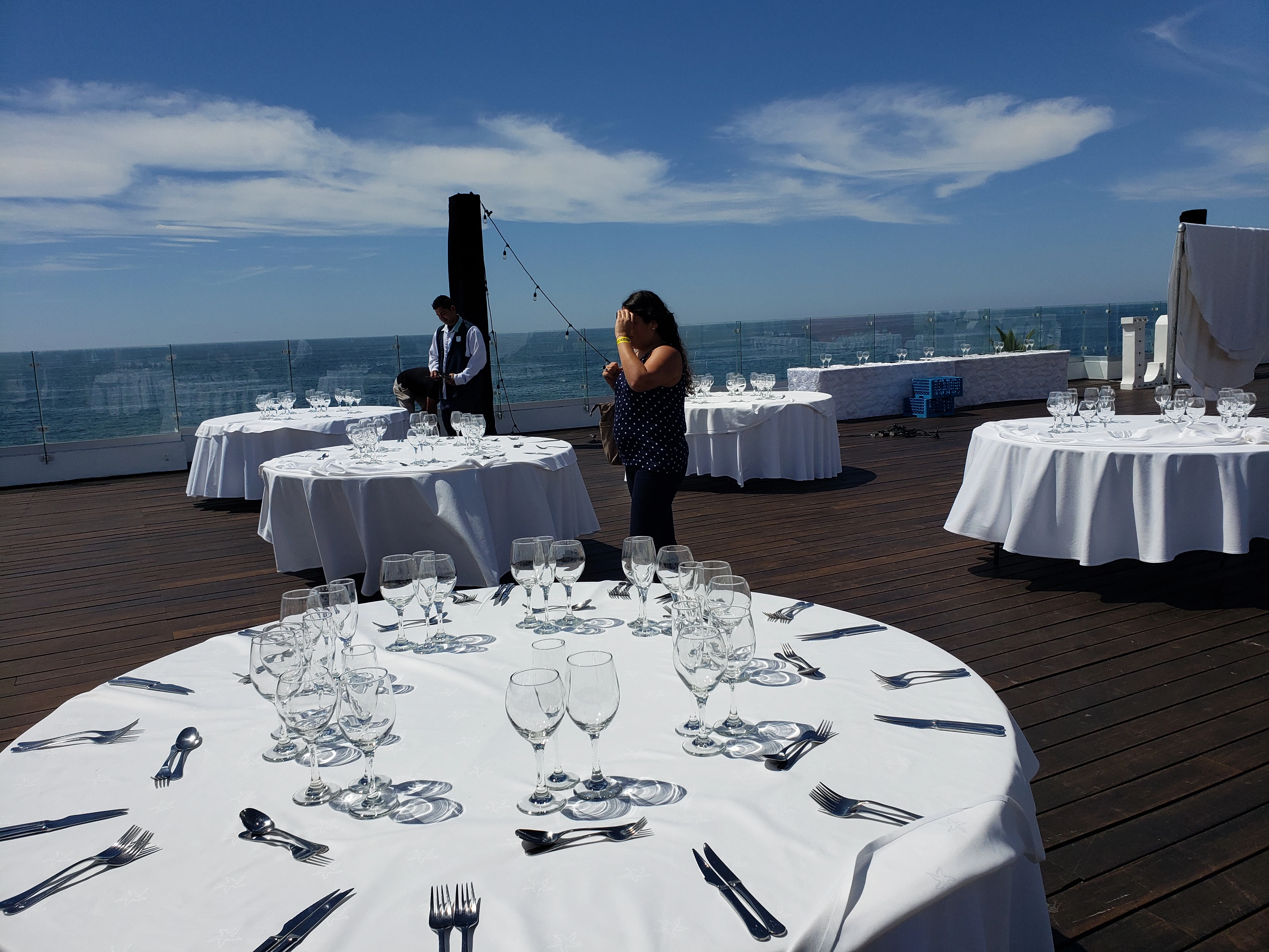 Now you can move over to the reception area that can be set up anyway you would like. Imagine your table clothes with stunning runners of your favorite colors & adding the chairs of your choice to match. This was being set up for a wedding on our arrival.